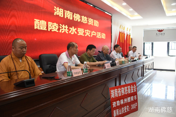 出席本次捐赠活动的还有醴陵市政协主席江曙明、醴陵市委统战部副部长文志勇、株洲市佛教协会副会长、醴陵市佛教协会会长释一苇法师、株洲市佛教协会副会长、醴陵市仙岳禅寺住持释法仪法师。