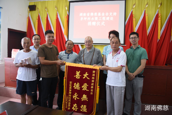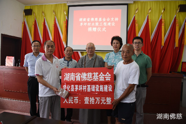 然而,自2019年6月以来,持续的暴雨引发安化县多地山洪暴发,茅坪村唯一通组公路也多处发生山体滑坡、路基坍陷,导致村民基本生产、生活基础设施被严重损毁,村民出行十分不便。湖南省佛慈基金会得知此情况后,于2019年7月29日下午,中国佛教协会副会长、湖南省佛教协会会长、湖南省佛慈基金会理事长圣辉大和尚,率领湖南省佛慈基金会秘书长周仲山、常务副秘书长陈旭工作人员李长辉等一行人。继在湘西泸溪、靖州开展精准扶贫捐赠活动后,再次冒着酷暑,不顾舟车劳顿,驱车赶往了益阳市安化县茅坪村,助力精准扶贫攻坚战,捐赠善款10万元,帮助茅坪村恢复因洪灾导致损毁的基础设施。
