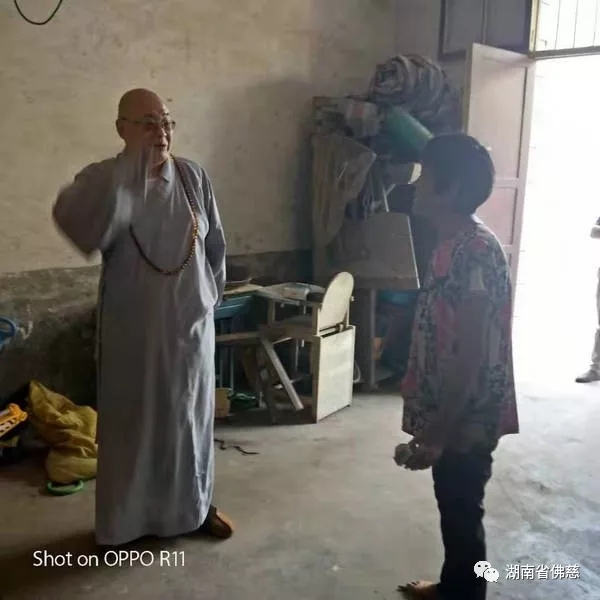 2019年9月28日下午5点,圣辉大和尚赶到湘潭县杨嘉桥镇镇政府,受到镇党委书记周冬林、镇长马勇根、宣传委员张霞,铺子岭村罗忠于村主任的热情接待。在询问了有关情况后,然后在罗忠于村主任的陪同下,来到谢家,见到了周菊华和她的孙子谢银波。