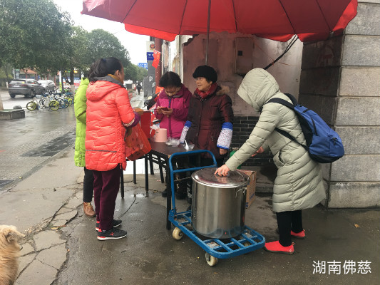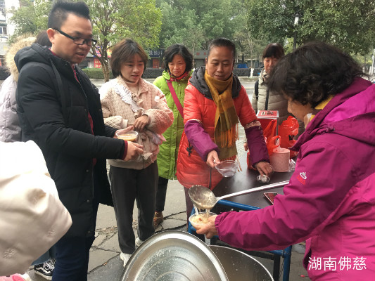 2020年1月2日适逢腊八节,湖南省佛慈基金会依照传统,志工们早早的在基金会大门口摆放了施粥的点位。热腾腾的腊八粥,在人们的手中传递,人与人之间的情谊也在慢慢升腾。看着喝粥人满脸的笑容,更是深深的咀嚼出了和谐社会的味道,我们想,这也就是幸福生活的味道。