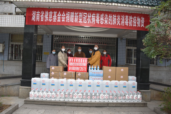 为了万众一心,守望相助、打赢防疫战,湖南省佛教协会积极响应党中央和省委省政府的决策部署,在抗击疫情的关键时刻,1月28日给全省各寺院佛教教职人员和广大信教群众发出了倡议书。湖南佛慈基金会作为湖南最早成立的佛教界慈善组织,根据省佛协的倡议,全力以赴为“抗击新型冠状病毒感染肺炎疫情”举行了募捐活动,经短短十二天时间,即募集了100多万元善款和物资。继1月28日向湖南省红十字会捐出首批人民币53万元善款、委托转赠到武汉用于支持新型冠状病毒感染的肺炎防控工作。