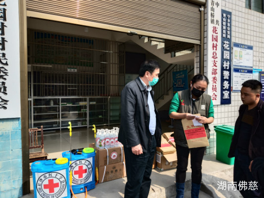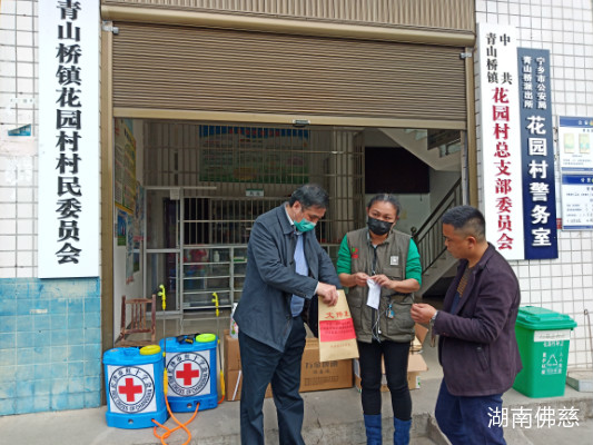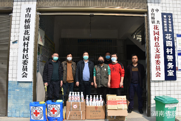 2月24日上午受全国人大代表、中国佛教协会副会长、省佛教协会会长、省佛慈基金会会长圣辉大和尚委托,长沙市民宗局党组成员副局长何水军、省佛慈基金会常务副秘书长陈旭等一行4人驱车100多公里,前往了宁乡市青山桥镇花园村紧急捐赠防疫物资。