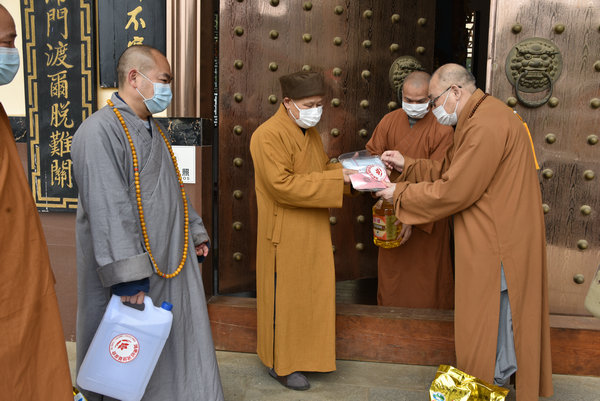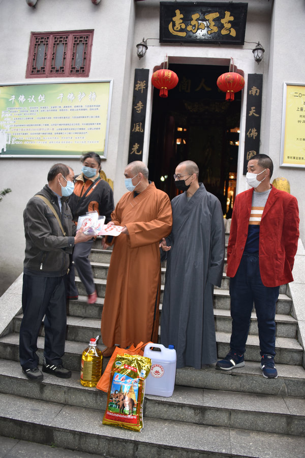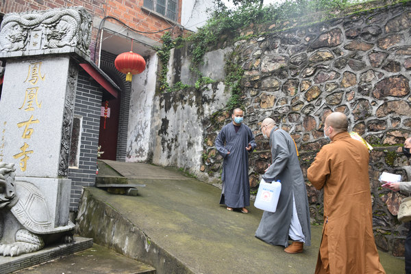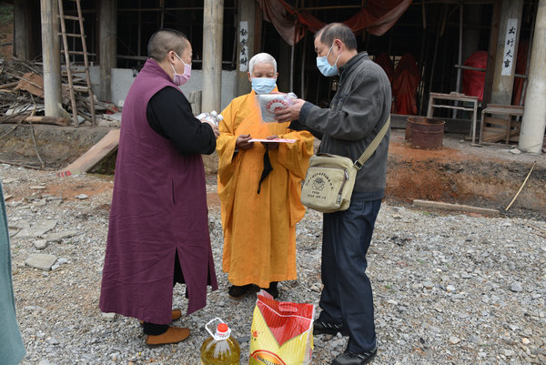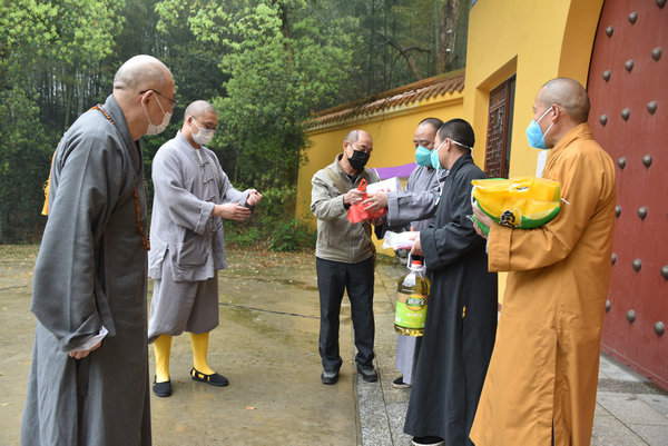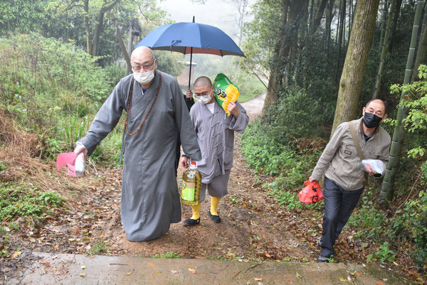 3月10日,圣辉大和尚与基金会一行人对长沙岳麓区的六合寺、灵瑞寺、泉湖寺;湘潭的比丘尼丛林海会寺、雨湖区偏远山区的迎龙寺、昭山示范区昭山古寺的上下两院及娄底的双峰县的双胜寺开展了“偏远山区中小寺院抗疫慈济行”的第二站。