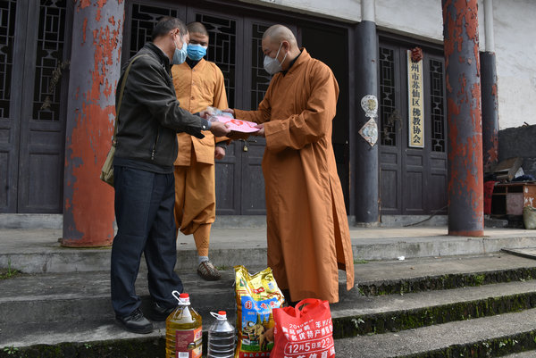 3月18日,省佛协副会长、省佛慈基金会副理事长怀泉大和尚,省佛协副会长、省佛慈基金会副理事长兼秘书长周仲山居士、常务副秘书长陈旭居士等人代表省佛协、省佛慈基金会在省佛协常务理事、湘西自治州佛协会长芳慧法师、张家界市佛协向华秘书长的陪同下对自治州的浦兴寺、灵光寺、骑仙洞寺、雷音寺、灵福庵、观音寺、太平寺,张家界的天门山寺、普光禅寺开展了第九站的“偏远山区中小寺院抗疫慈济行”。