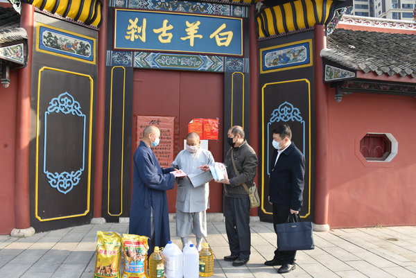3月19日,在省佛协副秘书长、常德佛协会长旦领法师的陪同下,省佛协副会长、乾明寺方丈明禅大和尚、省佛协副会长、省佛慈基金会副理事长兼秘书长周仲山居士、常务副秘书长陈旭居士等人不顾连日的舟车劳累,对位于常德市的白鹿寺、太子寺、净照寺、乾明寺、嘉山寺,进行了第十站的“偏远山区中小寺院抗疫慈济行”。于此同时旦领法师代表常德佛协积极响应省佛协开展的“偏远山区中小寺院抗疫慈济行”的活动,也对桃源金山寺、澧县六家寺、汉寿白鹤寺、猴王寺等常德境内的部分困难寺庙发放了慰问金和大米、食用油。
