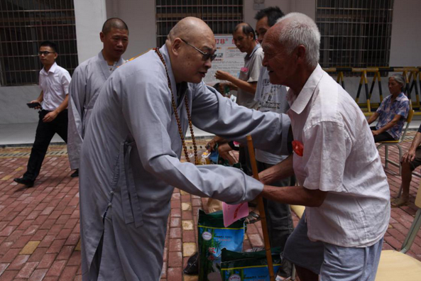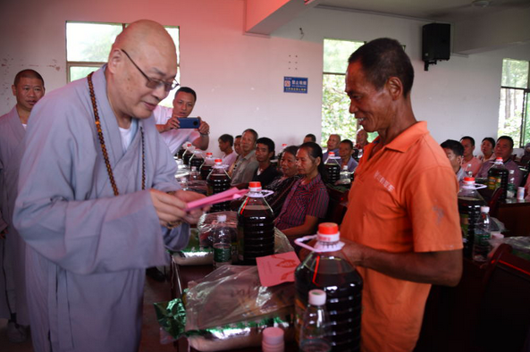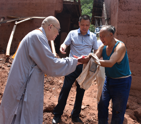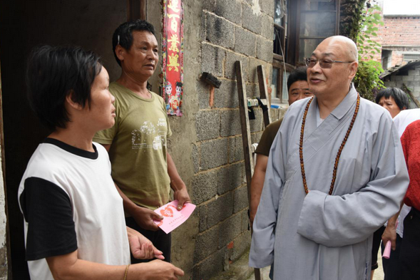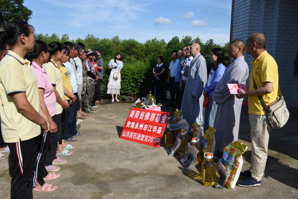 在三地的捐赠活动中,每到一个帮扶点,圣辉大和尚都慈悲的说,当前我们国家正在抓紧做好做细“外防输入,内防反弹”的新冠肺炎常态化疫情的各项防控工作和举措,然而进入6月以来,湖南多地普降暴雨,引发严重的洪灾。湖南佛慈始终心系民众,广大佛教界人士与社会各界爱心人士更一直关心着受灾的父老乡亲。洪涝灾害发生后,湖南佛协和佛慈基金会克服受疫情影响的自身困难,紧急筹集了一批善款和物资,帮洪涝灾区受灾的父老乡亲解决一些燃眉之急和基本生活所需,为灾区人民在当地党和政府的领导下,抗灾自救、重建家园作出我们佛教界力所能及的帮助。这次所筹善款和物资虽然不多,但却体现了湖南佛教界与灾区人民共克时艰的心愿,并祈愿国泰民安,灾区人民吉祥安康!