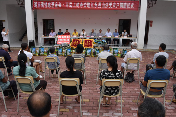 湖南佛教界“2020年救灾帮困助学慈善行”于6月28日正式启动。当天圣辉大和尚一行,首站赶赴衡阳县,对受灾最严重的石市镇开展完赈灾捐赠活动后,马上驱车近三个小时开展第二站、第三站的捐赠工作。