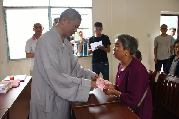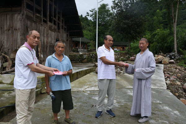 在捐赠活动现场,怀泉大和尚向受灾群众转达了圣辉大和尚对受灾群众的殷切关注,并强调说,至此国家正在抓紧做好做细“外防输入,内防反弹”的新冠肺炎常态化疫情的各项防控工作和举措之际,湖南佛教界始终心系民众,与社会各界爱心人士都一直在关心着灾区的老百姓。湖南佛协和佛慈基金会虽然自身也受疫情带来巨大影响,依旧克服困难筹集了一些善款和物资,衷心希望能够为灾区群众解决一些燃眉之急和基本生活所需,相信灾区人民在党和政府的坚强领导下,一定能够抗灾自救、重建家园。