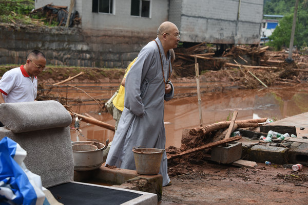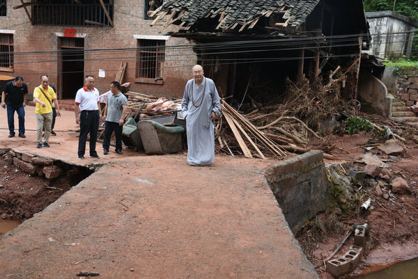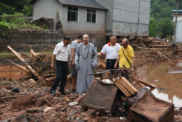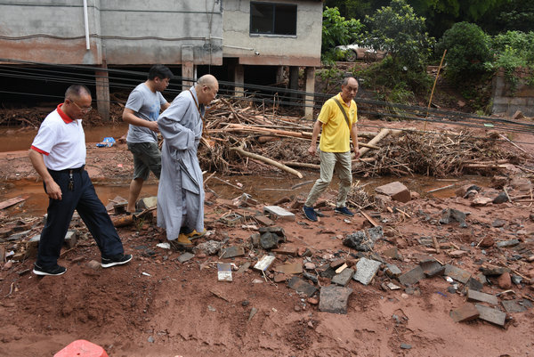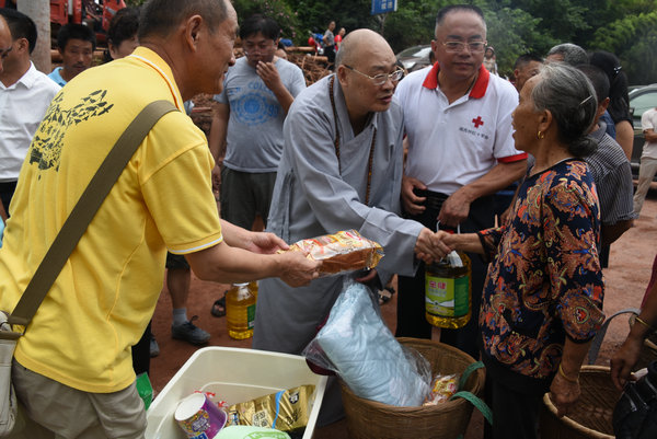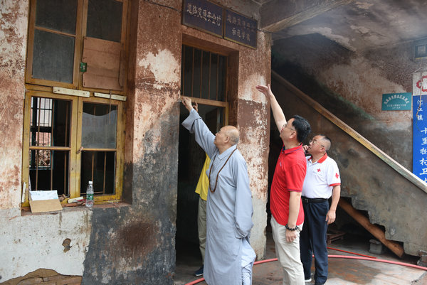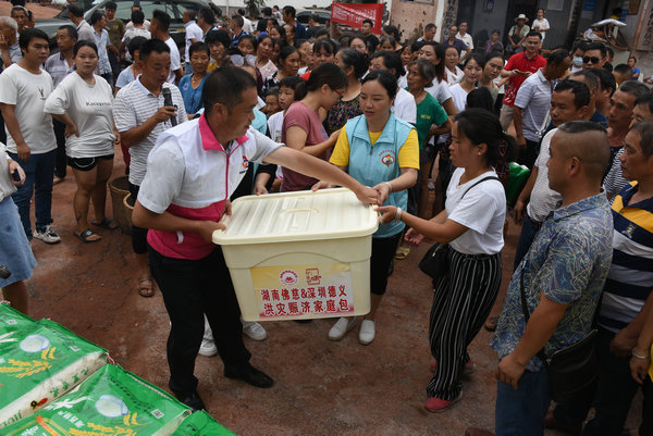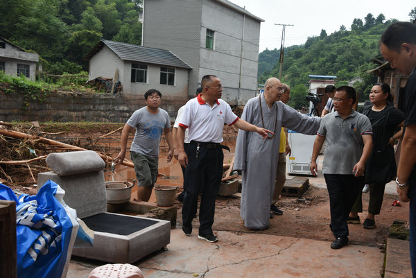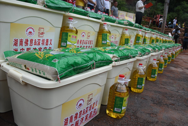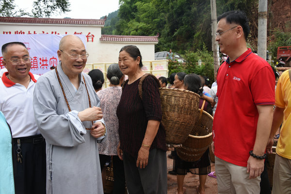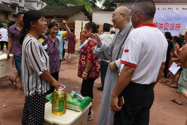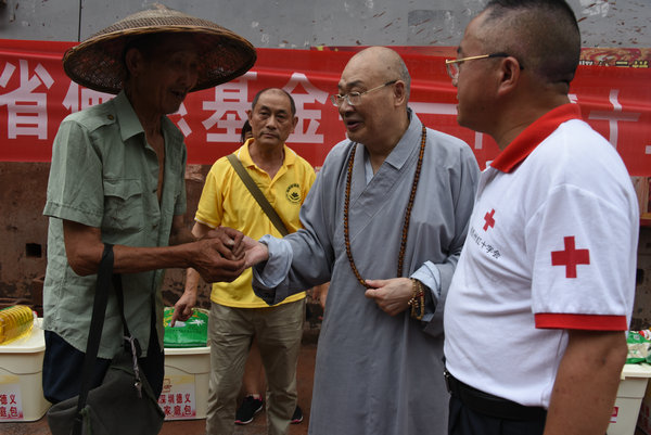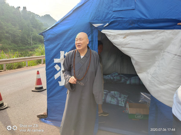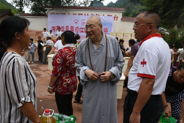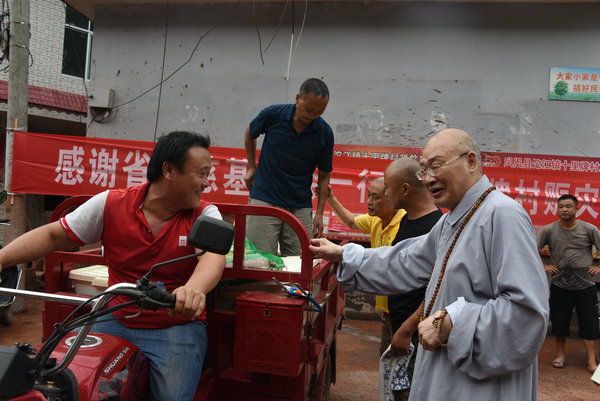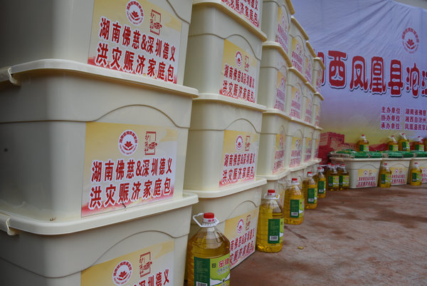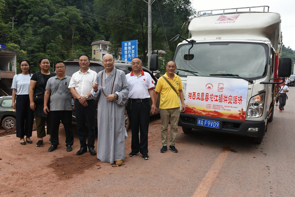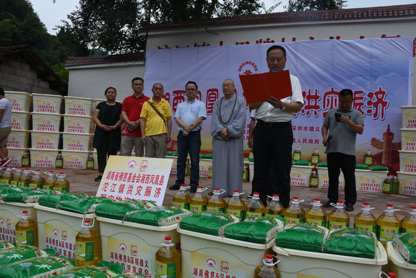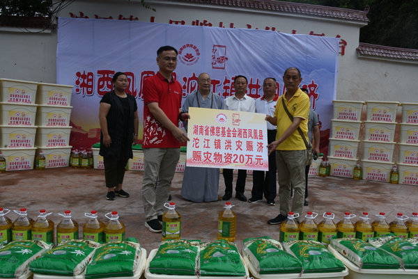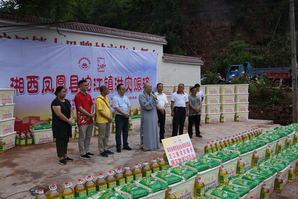 得知灾情发生后,湖南省佛慈基金会、深圳市德义爱心促进会紧急携手筹集善款,于2020年7月7日在中国佛教协会副会长、省佛教协会会长、省佛慈基金会理事长圣辉大和尚的亲自带领下,赶赴凤凰县沱江镇十里牌村开展湖南佛慈2020救灾帮困助学慈善行第五站的洪灾赈济工作。