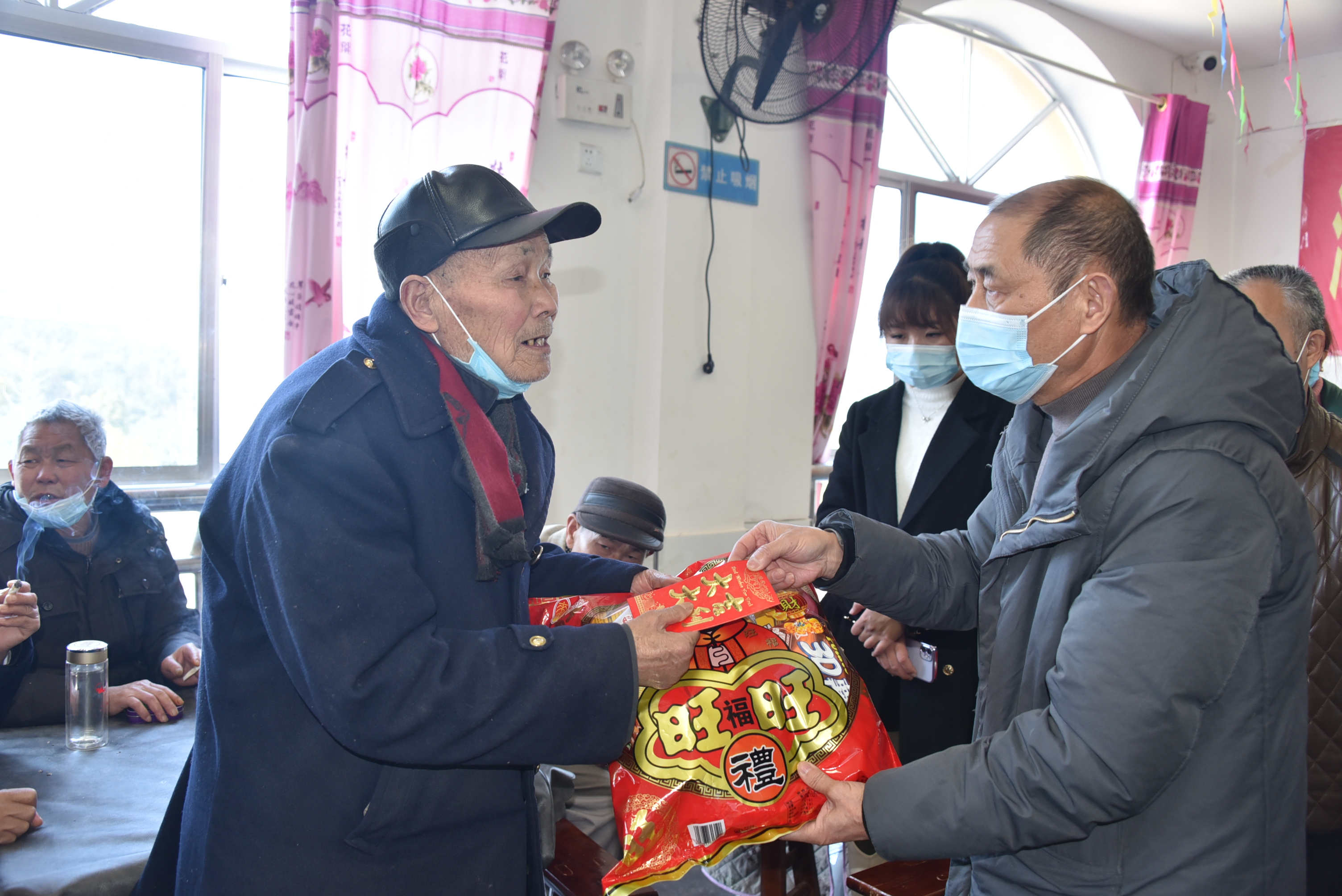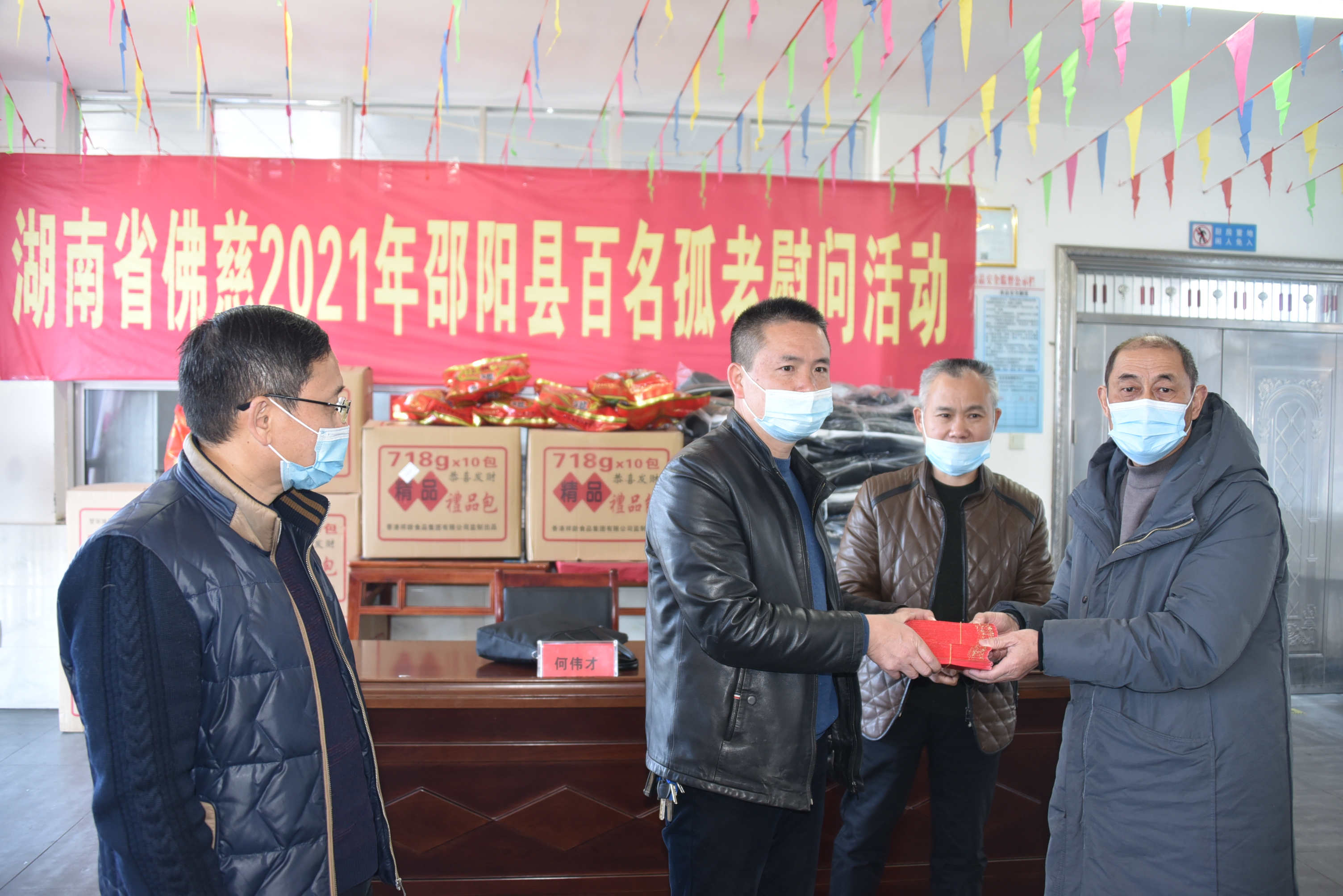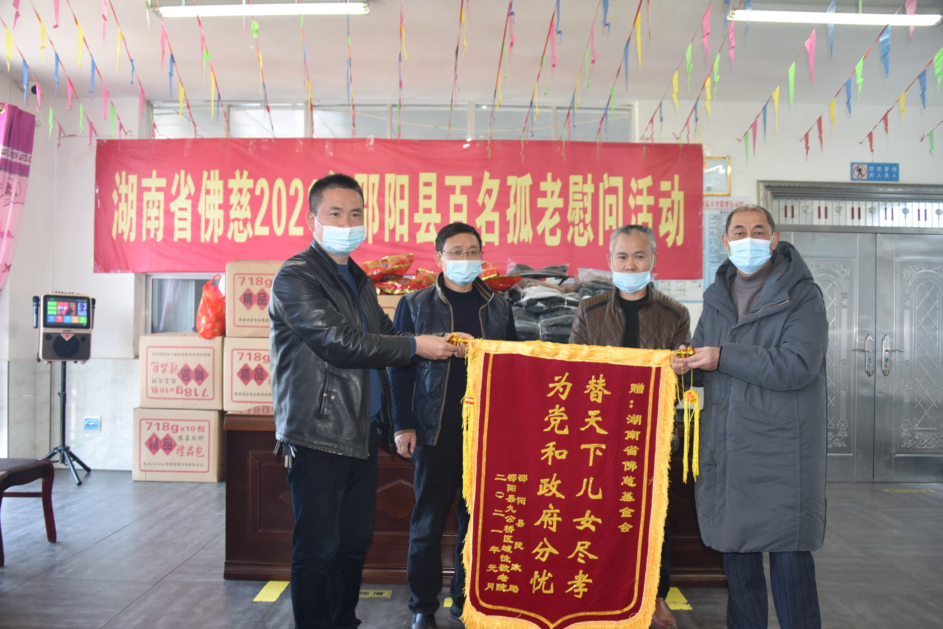 本次活动共捐赠慰问物资:棉衣103件、大礼包103个、防疫物资万金消毒片30瓶、慰问金103个计40150元。