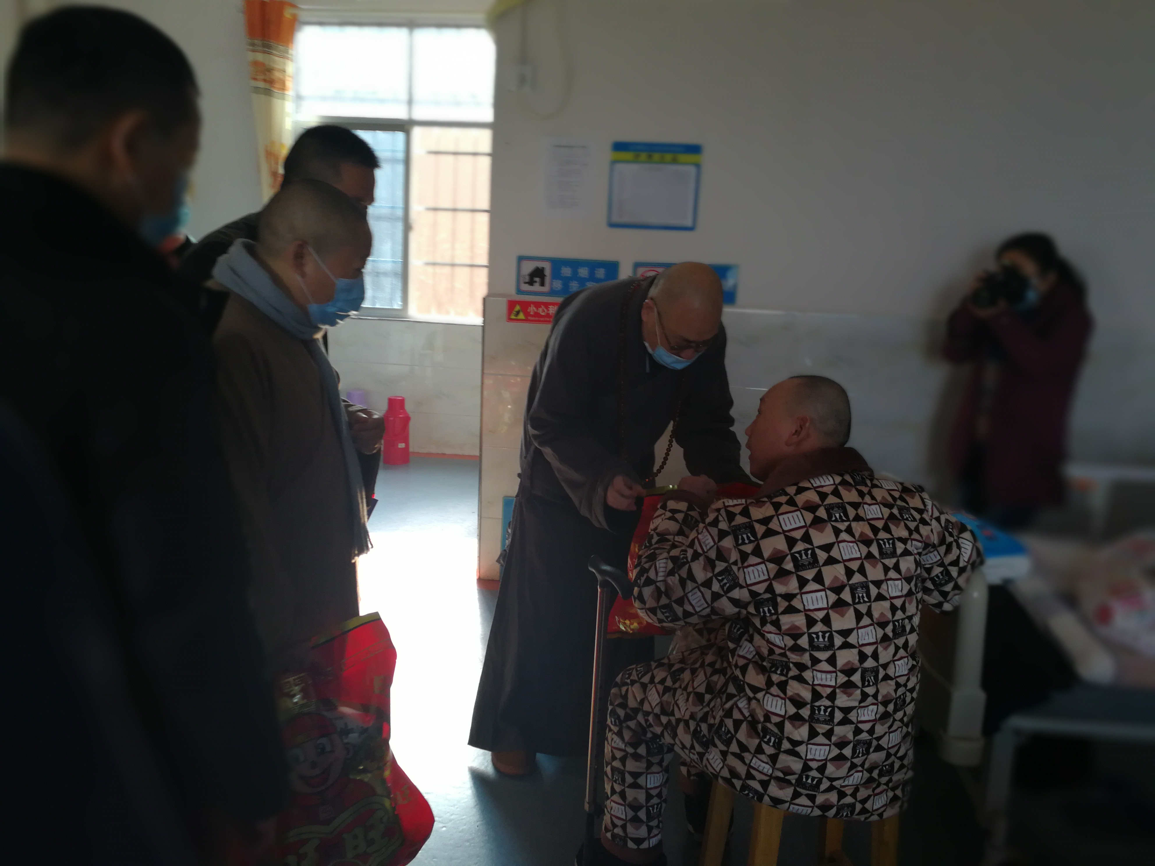 在九公桥区域性敬老院,圣辉长老认真询问老人们的疫情防控、生活、看病就医等情况,并察看了老人们的起居卧室,叮嘱他们注意冬日保暖。圣辉长老还拜托敬老院工作人员,更好地提高敬老院的生活质量、提供优质化的服务、搞好环境卫生,确保每位老人从内心感受到敬老院的温暖,感受到党和政府的关爱。