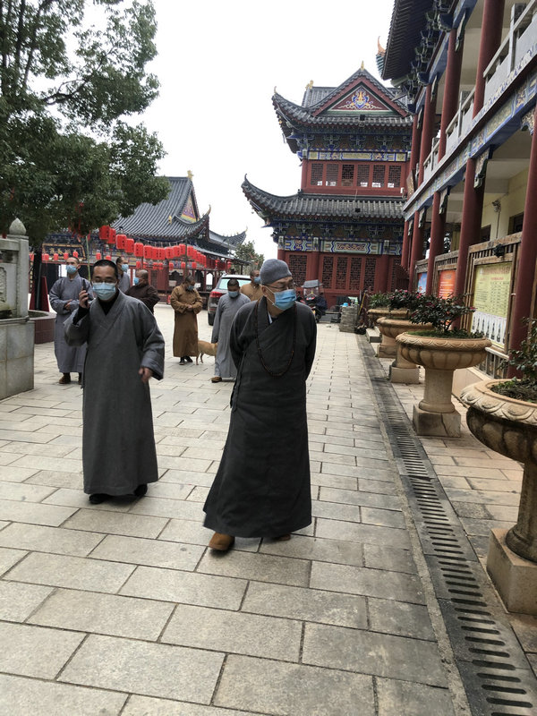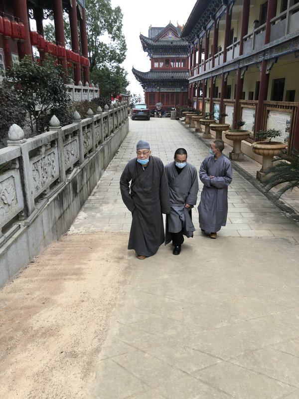 22日在结束了对九公桥区域性敬老院百名孤残老人的慰问后,圣辉长老带领省佛协干事永昭法师,利用返途中的方便,对邵阳和娄底两市的部分寺院,就贯彻落实省佛协《关于做好湖南佛教界冬春季节疫情防控和安全防范工作的通知》及寺院教风建设的情况,展开了考察调研。在邵阳市考察调研期间、邵阳市民宗局副局长龚世喜、邵阳市佛协志东会长全程陪同,新宁县委常委、统战部部长匡丽群、常务副部长肖勇、民宗局副局长兰西、办公室主任肖匡,武冈市统战部副部长潘叶云,洞口县佛协会长、无量禅寺住持,新宁县佛协会长、大佛寺、狮陀寺、风形庵的寺院住持,武冈市佛协会长、洪觉寺住持在所在地陪同考察调研。在武冈、圣辉长老了解到双峰山上建自明朝的洪觉寺,由于寺里的僧人慈悲利生、半个世纪前,有几个现已年过90的老人,当初因患麻风病被政府统一安排到这里治疗,其治疗痊愈后至2017年、都先后离寺回家,而保存了400年前的古木结构的古寺、也全部回到了佛教界。现在寺院有湖南佛学院第十届毕业的几位学生按丛林规则的要求在里面诵经禅修。在洪觉寺,圣辉长老对这几位学生、安心于深山古刹修学、进行了勉励,并代表省佛慈基金会捐资五万元、购置消防器材,以维护好这座保存完好的古寺。在娄底市考察调研中,娄底市委统战部副部长陈健庄、娄星区委统战部副部长、民宗局局长黄华裕,娄底佛协会长、天籁寺方丈达源大和尚陪同对天赖寺、观音寺、白云寺、古天王寺进行了考察调研。在天籁寺,圣辉长老看到以前破败的寺院,如今建设得古香古色、耳目一新,表示了赞叹,希望娄底佛教事业在新时代的新征途中、气象更新。娄底市李有才副市长、市人大陈明华副主任、邓光吕秘书长在住处看望了圣辉长老。对在两市寺院的考察调研中、发现不足和需要加强的地方,圣辉长老及时对两市党政宗教主管部门的领导和两市佛协会长进行了反馈,希望引起两市有关部门和佛协重视,进一步加强佛教的自身建设,使佛教事业在健康发展中而行稳致远。