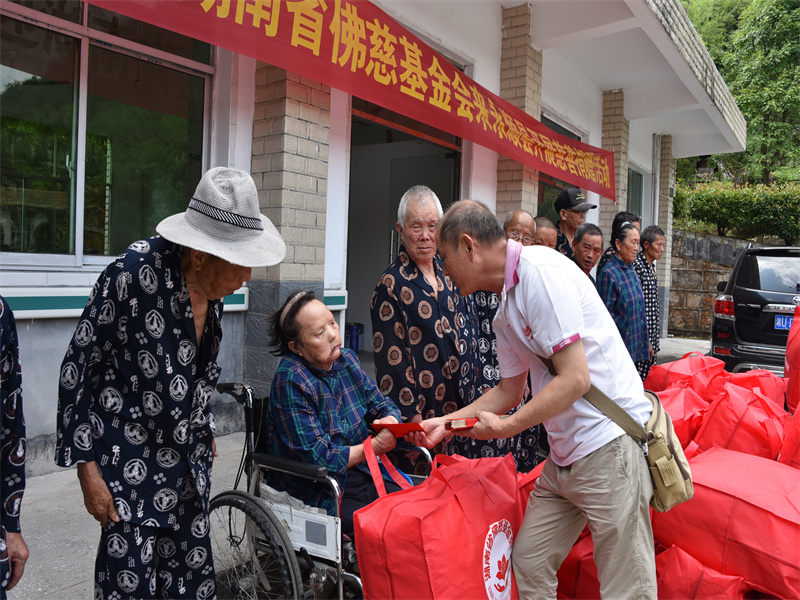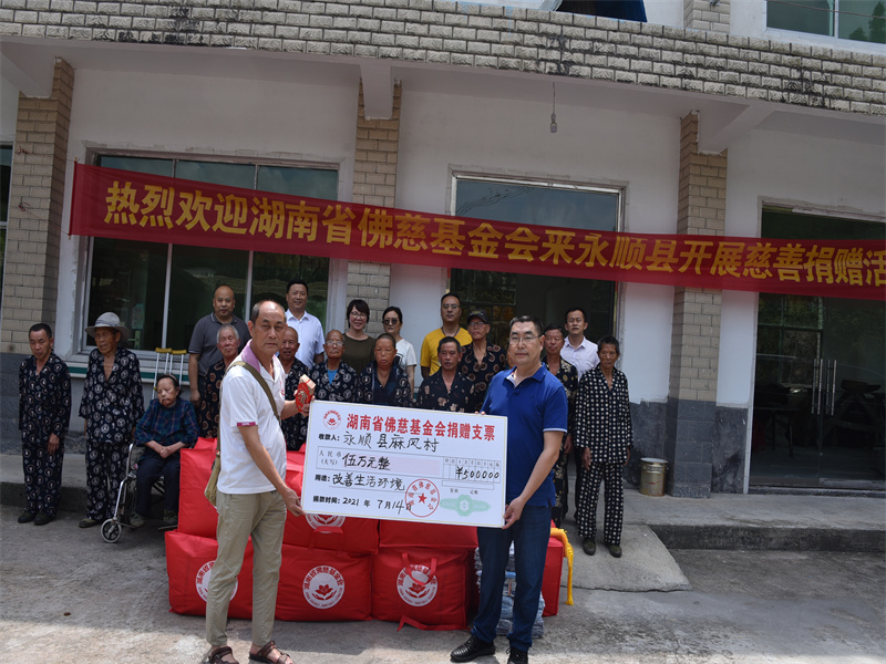 永顺县麻风村是省里最早建立的麻风病院村之一,目前村里有20位麻风村患者居住,年龄最大88岁,最小56岁,有劳动能力4人,丧失劳动能力16人,其中生活不能自理8人,均为II级畸残者。因6月底遭受持续暴雨袭击,麻风病院村有屋顶瓦面在狂风中掀翻,室内外墙壁被暴雨冲刷,20米围墙被冲垮。 佛慈基金会得到受灾信息后,受基金会理事长圣辉长老委托基金会工作人员一行于2021年7月14日上午来到永顺县麻风病院村进行慰问活动,本次活动基金会共捐赠现金5万元。湘西州红十字会、永顺县红十字会得到信息也赶到麻风村,并带来了一批床上用品捐给住在村里的患者。使麻风村早日恢复暴雨造成的损失。