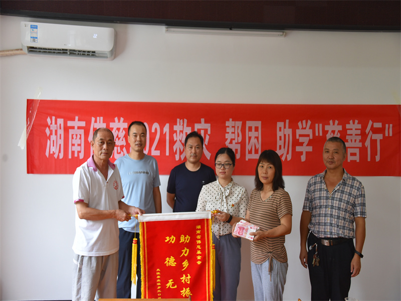 7月20日,受基金会理事长圣辉长老委托,基金会秘书长周仲山,工作人员李东劲驱车300多公里来到垄溪乡三口龙村,向村委会捐赠人民币五万元,新裤子100条价值5000元。合计共捐赠财物55000元整。