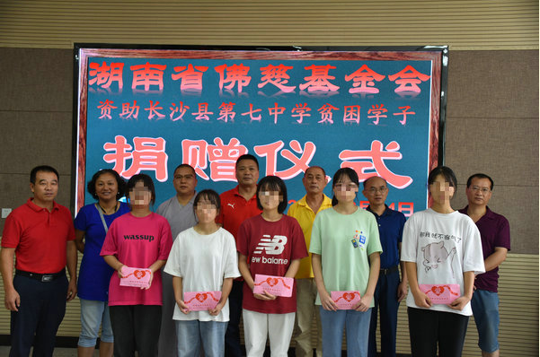 湖南省佛慈基金会自2018年起,就一直持续关注长沙县第七中学的困境学子。并启动了护生功德陪伴计划公益项目。该项目精准定位为帮助处于困境的家庭或个人给与资金支持,尤其对困境学子施以援手。