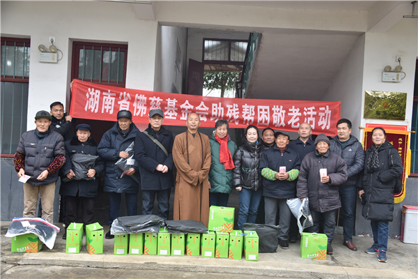 参加本次慰问活动的有:省佛慈基金会秘书长周仲山;省居士修学会陈春香副主任;湘阴县佛教协会早国法师;樟树港镇党委委员、宣传统战委员彭高峰。