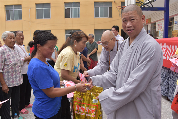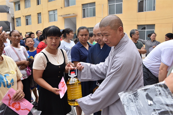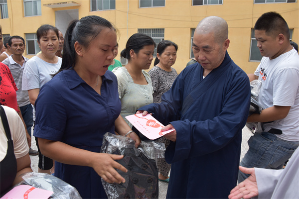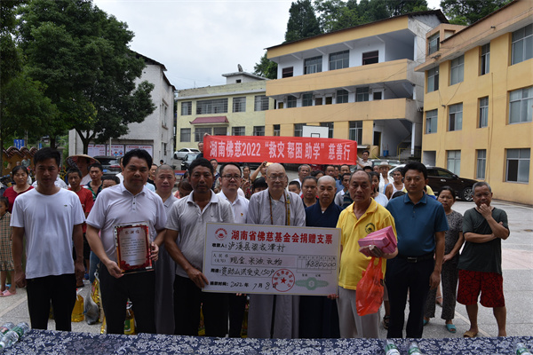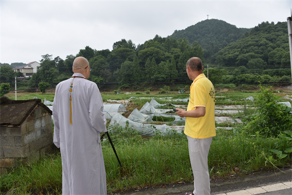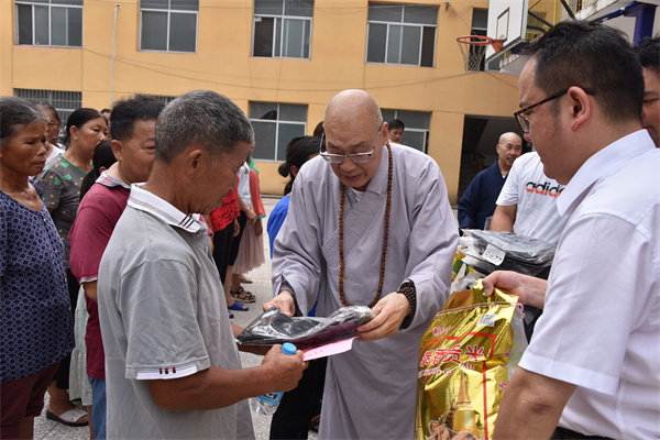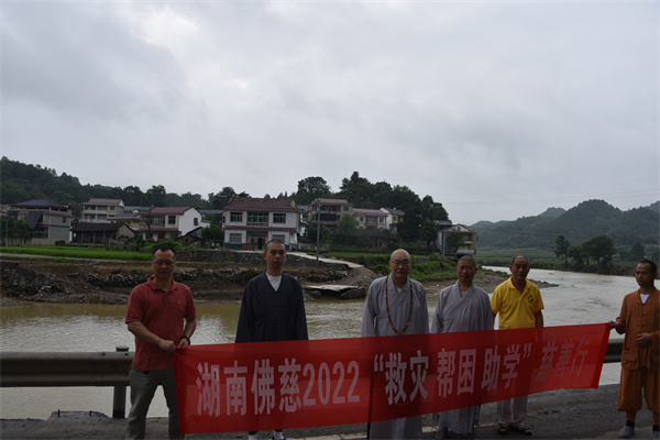 7月8日,湖南省佛慈基金会理事长圣辉长老带领副理事长怀泉大和尚、秘书长周仲山等一行深入受灾严重的洗溪镇梁家潭村开展灾后慰问救助行动。一路前行看到多处塌方、农田被毁。向村干部和村民仔细了解洗溪镇梁家潭村受灾点农田、道路、房屋等损毁情况,与群众亲切交谈,并在灾后重建上多争取、多倾斜、多覆盖,帮助泸溪人民渡过难关。本次救助泸溪县洗溪镇梁家潭村受灾村民150户,其中现金红包每户400元,米油和新衣服价值2.8万元,共计捐赠钱物8.8万元整。