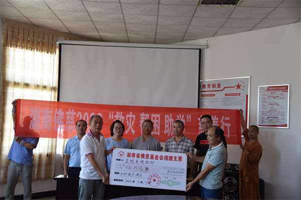 7月13日,受圣辉长老委托,省佛慈基金会副理事长怀泉大和尚率秘书长周仲山及基金会工作人员一行顶着热情似火的骄阳来到了炎陵县沔渡镇晓阳村,捐赠人民币5万元用于乡村振兴 —— 光伏发电项目。