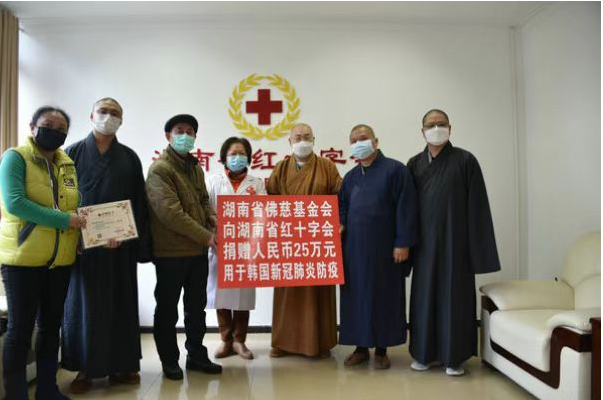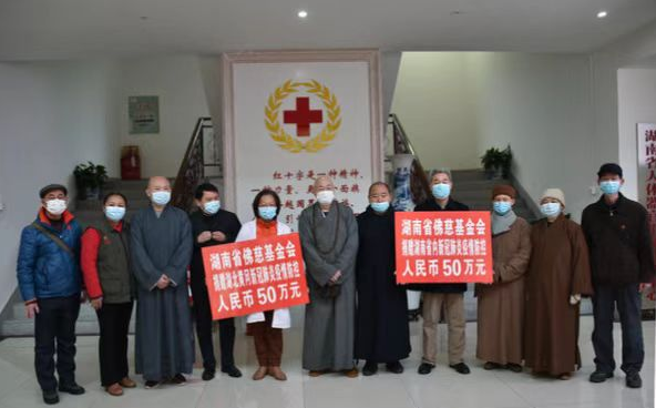 为了万众一心,守望相助、打赢防疫战,湖南省佛教协会积极响应党中央和省委省政府的决策部署,在抗击疫情的关键时刻,2020年1月28日给全省各寺院佛教教职人员和广大信教群众发出倡议书。湖南佛慈基金会作为湖南红十字会联系的最早成立的佛教界慈善组织,根据省佛协的倡议,全力以赴为“抗击新型冠状病毒感染肺炎疫情”举行了募捐活动。经短短十多天时间,募集了100多万元善款和物资。继2020年1月28日向湖南省红十字会捐出首批人民币53万元善款外、皆委托其转赠到武汉用于支持新型冠状病毒感染的肺炎防控工作当中。三年来,湖南省佛慈基金会先后还启动并捐赠了:隔离不隔爱关爱残障高三毕业生项目、支持湖南省内环卫工人、公安干警、社区基层干部、社会组织疫情防控项目、韩国佛教界抗疫项目、支持边远山区困难寺院抗疫项目,还联合凤凰网佛教、灵山慈善基金会、苏州弘化社慈善基金会等佛教背景的公益机构,面向全国佛教界发起的“慈航联盟”等抗疫行动,累计捐赠现金和防疫物资价值378万元。基金会常务副秘书长陈旭还荣获了长沙市人民政府颁发的“最美逆行志愿者”的光荣称号。