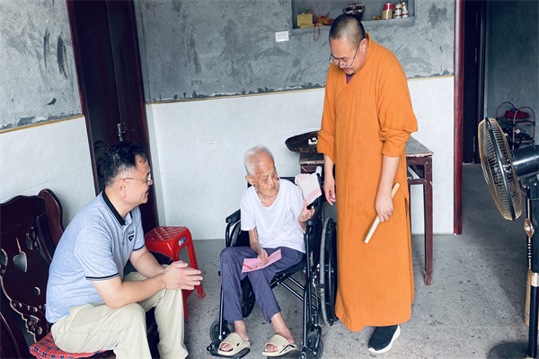 在新冠疫情期间,寺庙长时间处于关闭状态。那些地处偏远原本就香火稀的薄微小型寺庙里,独居的老年僧人也陷入到异常困境中。尤其是因为他们对社会信息及国家政策知之甚少,所遇到的困境更是鲜为人知。很多老僧人靠自己下地种菜,或者乡亲们隔三差五送点米粮才得以度日,有些耄耋老人多数处于无人陪护照料的现状。为了能够实实在在帮助到这些特殊身份背景下的困境老人。2022年初,湖南省佛慈基金会携手广州阳光青藤爱心促进会共同发起了“为爱扶弱助困暖人心”关爱年迈僧人公益项目。