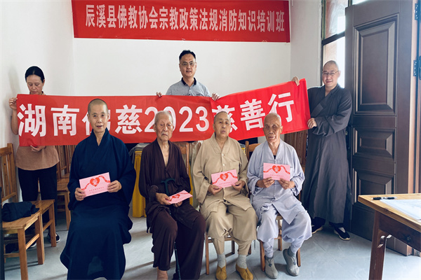 2023年7月7日从湘西吉首出发,受湖南省佛慈基金会理事长、湖南省佛教协会会长圣辉长老的委托。广州阳光青藤爱心促进会理事韩思远、湖南省佛慈基金会志愿者陈世明、赵树忠,在怀化市佛教协会会长登宁法师的引导下,前往怀化辰溪、洪江、麻阳、溆浦等地,继续为长期执教于怀化境内的42位年迈困境僧人送去了累计50400元敬老慰问金。