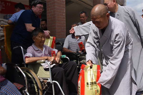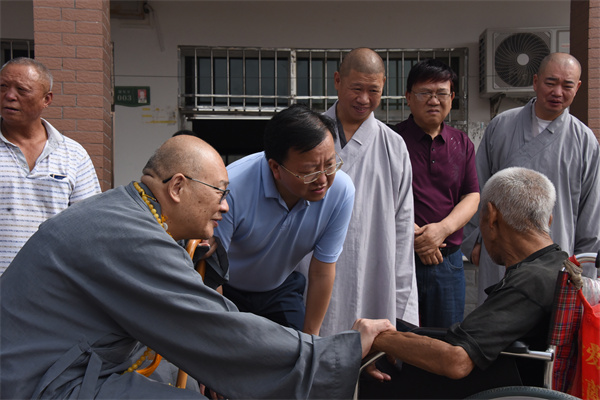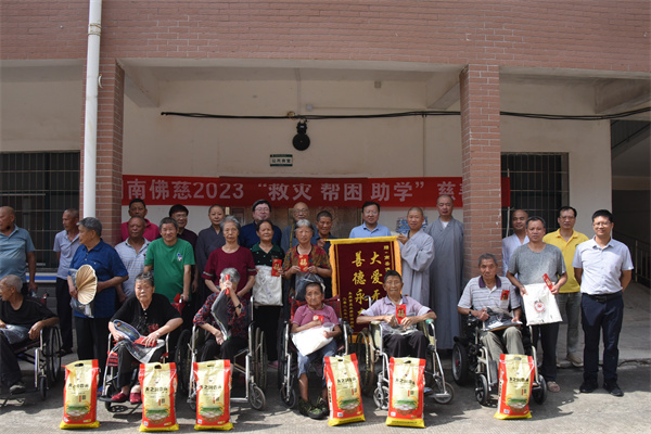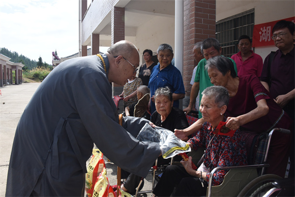 7月17日上午,湖南省佛慈基金会理事长圣辉长老、副理事长怀泉大和尚率领基金会工作人员李东劲、李长辉一行人,不顾路途遥远,来到麻风村看望住村的休养员。在这里,大家一起促膝长谈,圣辉长老详细的询问他们的生活情况,送上慰问金以及食用油、大米、新衣服等累计价值8万元的现金和生活物资。