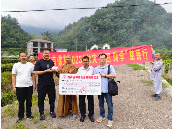 7月19日,受湖南省佛慈基金会理事长圣辉长老委托,副理事长怀泉大和尚率基金会工作人员李东劲、李长辉一行来到三合镇。慈利县三合镇人大主席唐植忠向大和尚详细介绍了二个村的情况,对圣辉长老和佛慈基金会历年来关注和帮助三合镇人民群众表示由衷的感激,感谢怀泉大和尚不辞辛劳来到三合镇实地了解情况和捐赠善款。怀泉大和尚嘱托一定要把善款用到实处,实实在在为老百姓办实事办好事。本次捐赠善款10万元用于帮助三合镇杨坪村新建饮水池和白鹤村3组路面走道硬化。