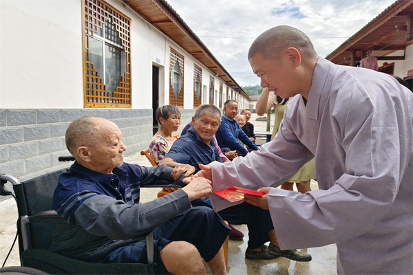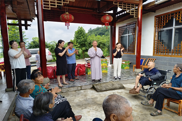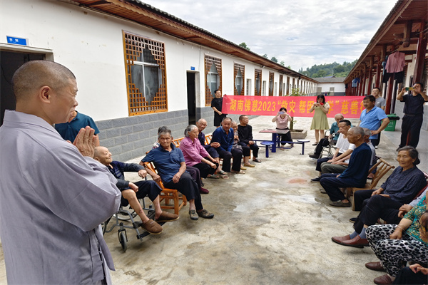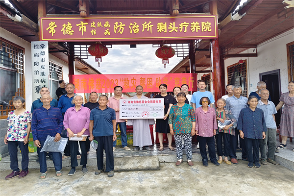 2023年7月20日,受湖南省佛慈基金会理事长圣辉长老委托,基金会副理事长怀泉大和尚和基金会工作人员李东劲、李长辉一行,在湖南省疾病预防控制中心麻防科科长陈欢;常德市皮防所党支部书记、所长邬松涛陪同下来到了风景美丽又安静的壶瓶山剩头疗养院,看望慰问住在院内的休养员们。怀泉大和尚告诉长住在此的老人,圣辉长老一直非常牵挂他们,特别的委托大家来看望他们。怀泉大和尚说,我们要感谢党和政府、感谢皮防所工作人员的辛勤付出,以及社会的爱心人士的关心。湖南省佛慈基金会现场向剩头疗养院捐赠了大米、食用油、新衣服以及支持修缮蓄水池的资金,累计人民币5万元整。