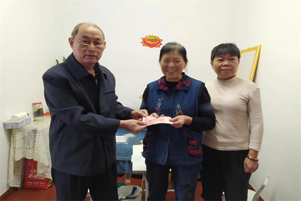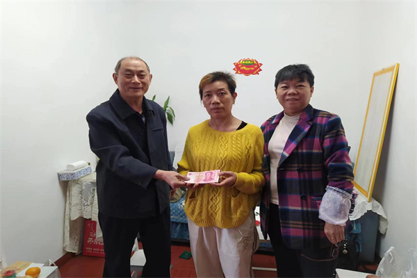 2023年11月,受佛慈基金会理事长圣辉长老委托,基金会周秘书长、工作人员闵晓红、李长辉一行,慰问了长沙市和益阳市三户因病致贫的特困家庭和益阳弥陀寺的本城老法师,共奉上慰问金8000元整。周秘书长倾听他们所思、所盼、所求,了解他们近期的生活情况。一句句暖心的话语,一次次贴心的问候,使他们倍感温暖,让他们在精神上得到了鼓励,增强了他们战胜苦难的勇气和决心。
