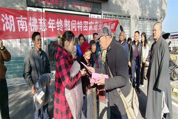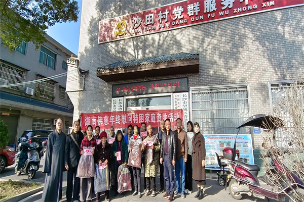 2023年12月7日授湖南省佛慈基金会理事长圣辉长老委托,基金会周仲山秘书长及工作人员一行3人,以及接受邀请参与本次活动的省佛协办公室副主任永生法师,共同前往位于长沙市望城区桥驿镇的禾丰村、沙田村和黑麋峰村,向30户困境家庭开展了集中慰问活动。