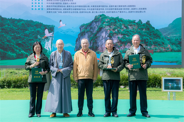 活动现场,省人大常委会原副主任、省人民政府原副省长唐之享,省政协原副主席刘晓,省委原副秘书长、省参事室原党组书记、主任李文才,省文史研究馆原党组副书记、一级巡视员李跃龙,省政协办公厅原巡视员徐皓明,省盐业轻工业厅原副厅长何真临,省生态保护志愿服务联合会会长周秋光等领导为来自黑龙江、湖北、浙江、湖南等地的共13个第七届“护生功德奖”突出贡献个人和优秀团队颁发证书和奖杯,全国人大代表、中国佛教协会副会长圣辉长老为获奖代表颁发奖金。