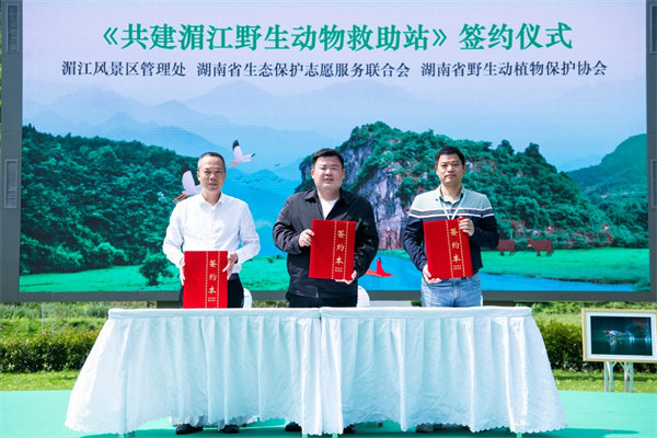 活动中湖南省生态保护志愿服务联合会、湖南省野生动植物保护协会和湄江风景区管理处共同签署《湄江野生动物救助站合作备忘录》,计划通过共同打造救助站、实现资源共享和技术支持,建立队伍体系、开展宣传与教育、对多样化的野生动物救助等合作内容,探索创建候鸟保护救助站模式。