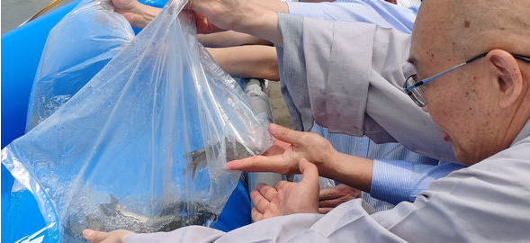 去年,建军会长又上山到寺院跟我通报说,湖南省生态保护志愿服务联合会得到了湖北省长江生态保护基金会的支持,要在湖南建立第一座公益放流站,将持续开展系列科学放生活动,还将通过科普宣传、展示等方式,引导社会群体、包括佛教界在内,共同按要求开展科学放生。我非常认同,作为名誉会长,希望共同为这无量功德,做出新成效。