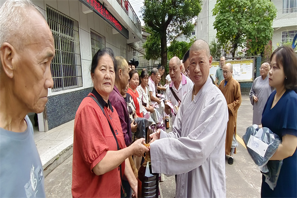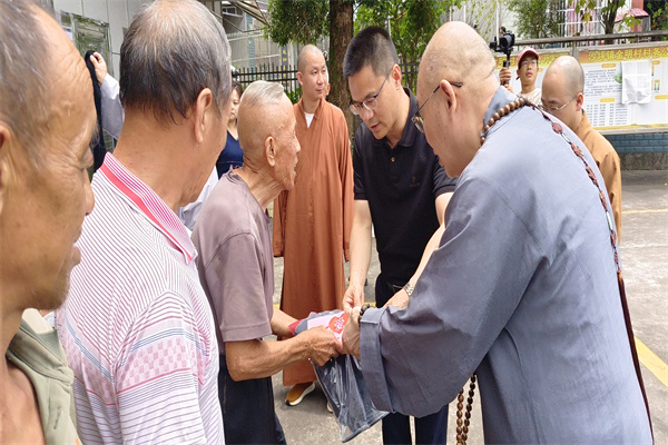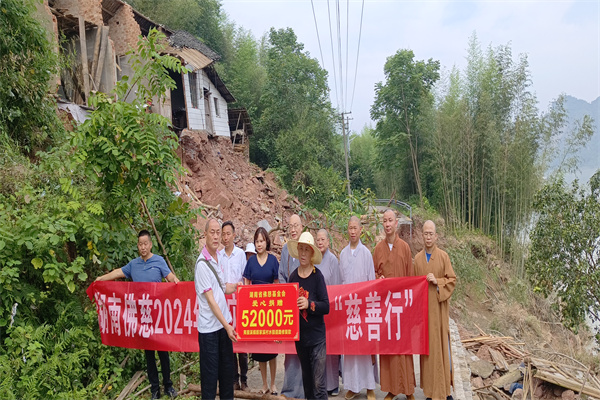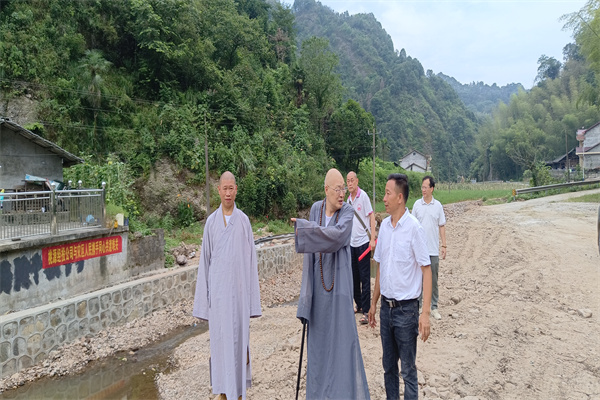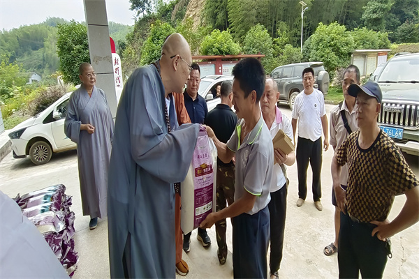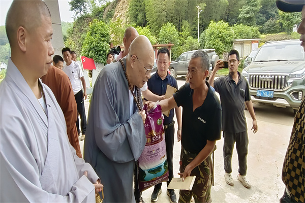 洪水无情,人间有爱。 2024年7月11日,中国佛教协会副会长、中国麻风防治协会名誉会长、湖南省佛慈基金会创办人圣辉长老,在湖南省佛教协会副会长、湖南省佛慈基金会副理事长怀泉法师,湖南省佛教协会副会长、湖南省佛慈基金会副理事长兼秘书长周仲山居士和桃源县县委统战部常务副部长彭新平,县统战部副部长、民宗局长马朝辉,县佛教协会会长释耀悟、副会长释耀辉陪同下到受灾严重的五个乡镇查看水毁道路,慰问受灾群众,问健康,询问大家的困难和诉求。他叮嘱乡镇工作人员,要细致周到安排好受灾群众的生活,帮助解决实际问题,鼓舞大家在党和政府领导下重建家园的信心。