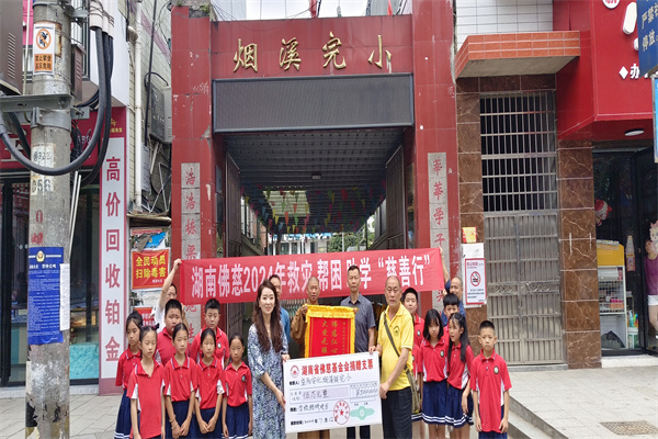 学生是国家的未来,收到烟溪镇完小的求助报告,湖南省佛慈基金会创办人圣辉长老很是牵挂,当即同意救助,帮助学校度难关。2024年7月12日,受圣辉长老委托,湖南省佛教协会副会长、省佛慈基金会副理事长怀泉大和尚,湖南省佛教协会副会长、省佛慈基金会副理事长兼秘书长周仲山一行五人驱车来到学校捐赠5万元用于修缮学校,还孩子们一个安全的学习环境,助孩子们快乐成长。
