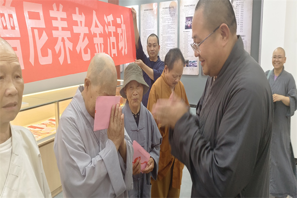 2024年7月14日,受圣辉长老委托,湖南省佛教协会副会长、湖南省佛慈基金会副理事长兼秘书长周仲山居士一行人,来到怀化地区(辰溪县、中方县、麻阳县、洪江区、芷江县、沅陵县、溆浦县、通道县)的29所寺院(庵)为常驻如此的34位65岁以上的老年僧人送去了2024年全年的79600元慰问金。