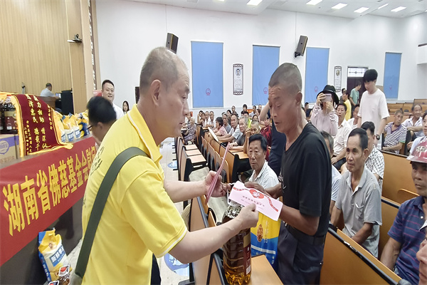 2024年7月16日,受中国佛教协会副会长、中国麻风防治协会名誉会长、湖南省佛慈基金会创办人圣辉长老委托,湖南省佛慈基金会副理事长兼秘书长周仲山一行冒着炎热风尘仆仆来到衡阳县三湖镇慰问受灾的群众,希望受灾群众在镇政府带领下开展灾后清扫、消杀和重建工作。并加快基础设施修复和农业救灾补损,全镇上下,干群合力,尽快恢复生产生活秩序。