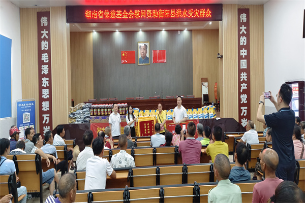 湖南省佛慈基金会本次慰问受灾群众200户,捐赠:大米、食用油、新衣服和慰问善款共计12.4万元。参加捐赠活动的还有:衡阳县统战部副部长、民宗局局长陈军,衡阳县三湖镇党委书记陈昊,衡阳县三湖镇镇长彭琳媛。