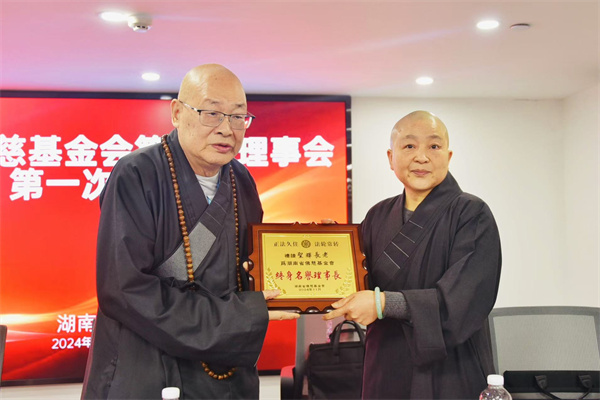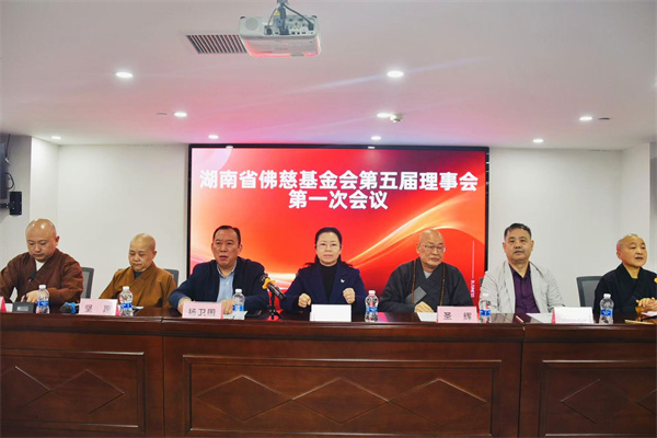 会议听取并审议通过了《湖南省佛慈基金会第四届理事会工作报告》、《湖南省佛慈基金会第四届理事会财务工作报告》和新修订的《湖南省佛慈基金会章程》。选举产生了新一届理事会监事会成员及理事会班子成员,湖南省佛教协会副会长、湖南省佛慈基金会第四届常务副理事长、长沙市开福寺住持能净法师当选为理事长,永兴(常务)、坚愿、怀泉、周仲山、陈升泉、罗丽芬、杨雅婷当选副理事长,秘书长永兴(兼)。礼请圣辉长老为名誉理事长。