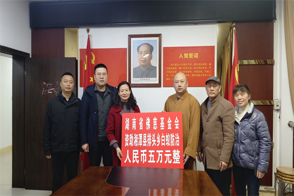 12月5日,受理事长能净大和尚委托,湖南省佛慈基金会常务副理事长兼秘书长永兴大和尚、基金会副理事长周仲山居士带着基金会工作人员一行四人风尘仆仆的来到湘潭县排头乡,现场捐赠善款5万元,定向用于帮助排头乡开展白蚁防治工作。排头乡是一个以林地为主的乡镇,其森林覆盖率高达47%,现有林地面积达8万多亩,拥有诸多名树名木。然而,随着气候的变化以及人类活动的影响,排头乡的生态系统面临着诸多严峻挑战,其中白蚁危害问题尤为突出。此次捐赠旨在守护当地的生态环境,助力排头乡在生态保护与乡村振兴之路上稳步前行。