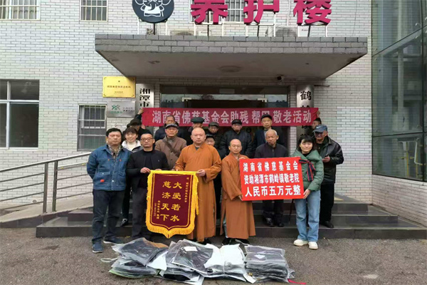 随后,基金会一行四人前往湘潭鹤岭镇敬老院捐赠人民币5万元整,专项用于敬老院的修缮工程。以及为每位老人送上新棉衣一件。该敬老院拥有 70 多个床位,现居住着近40位老人,由于房屋年久失修,院内出现房顶漏水、卫生间漏水、墙面发霉等状况,急需修复。此次捐赠彰显了湖南省佛慈基金会对老年群体的关爱与社会责任担当,旨在为老人们改善居住环境,让他们能够在舒适、安全的条件下安享晚年。
