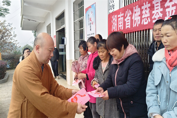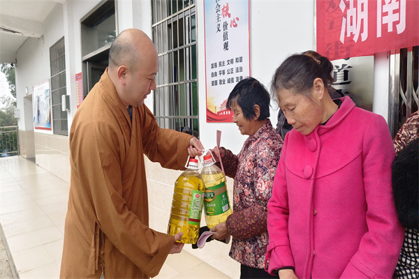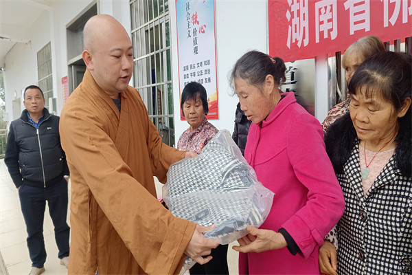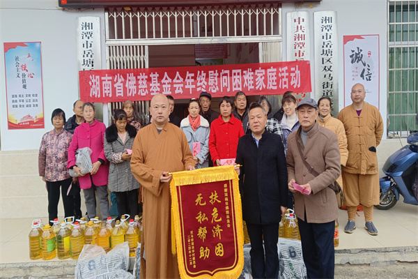 最后,基金会一行四人来到湘潭市岳塘区法华村开展救助行动。法华村地处长株潭核心地区,属绿心规划,受生态环境保护及绿心政策制约,村内无企业,集体经济薄弱,村民就业机会寥寥。当前,村里有24户家庭,家庭成员多为残疾或年老多病者,且大多没有经济来源。此次行动为24户村民每户送上了400元救助金及每户两桶食用油和新棉衣,在寒冬之际为这些困难家庭送去了温暖与关怀,也彰显了湖南省佛慈基金会积极助力困难群体、履行社会责任的担当精神。