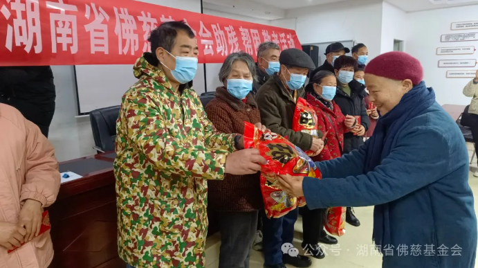 开福区委统战部常务副部长曾亮、开福区民政局副局长刘玄、开福区民宗局副局长王夏卉、新河街道办事处副主任李嶷及基金会副理事长周仲山、基金会副秘书长兼办公室主任香明法师陪同参加了慰问活动。本次慰问活动慰问善款及衣物、礼包等价值共计7.2万元。