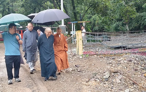 7月6日午后,这份坚韧迎来了温暖的回响。湖南省佛慈基金会理事长能净大和尚,常务副理事长兼秘书长永兴大和尚,副秘书长兼办公室主任香明法师,基金会副秘书长、醴陵市佛教协会会长一苇法师等一行9人,在湘西州佛教协会会长芳丽法师、沅陵县统战部民宗局张主任等的陪同下,踏着泥泞走来。