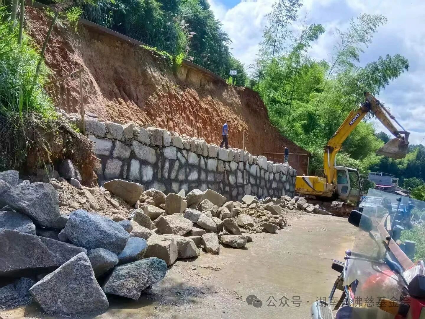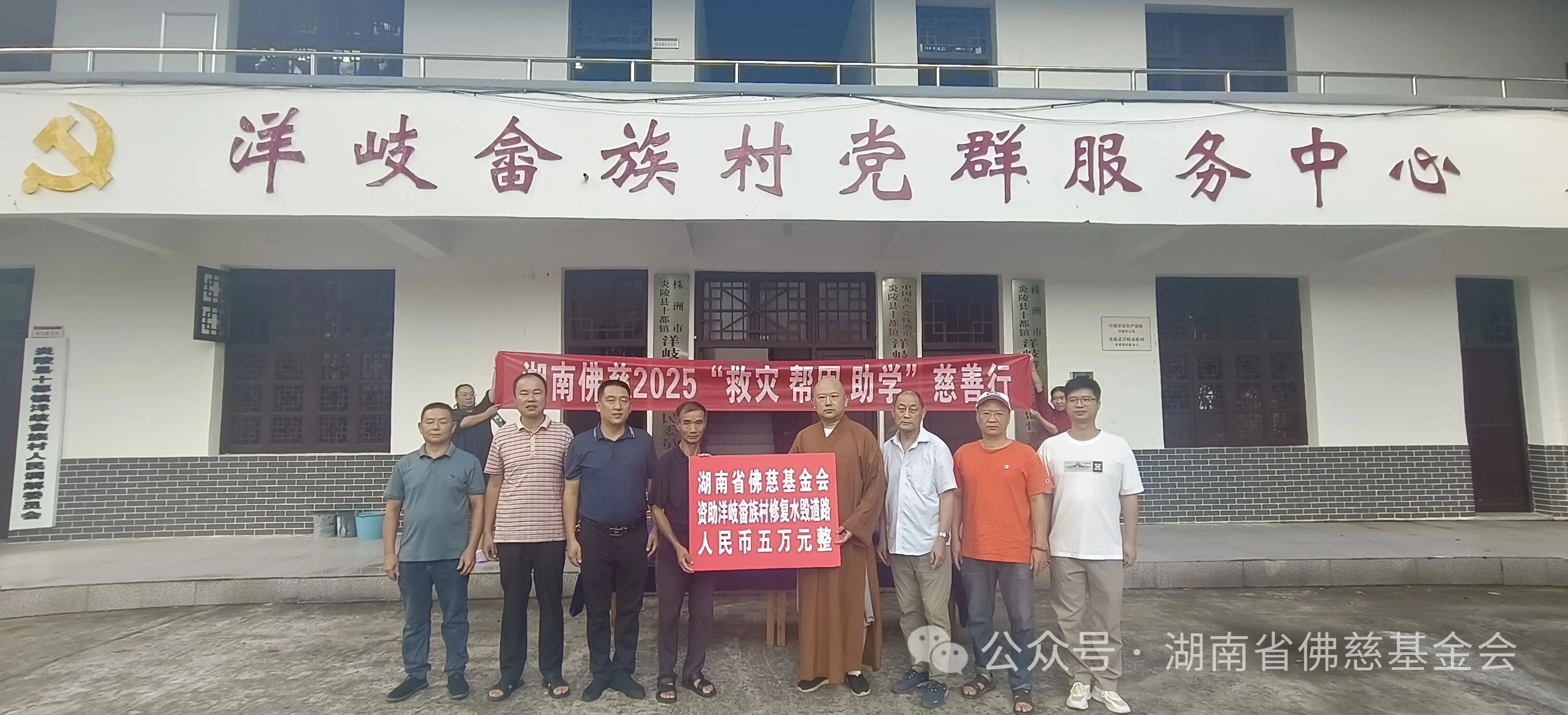 这一情况,很快传到湖南省佛慈基金会理事长能净大和尚耳中。了解到洋歧村面临的艰难,能净大和尚心系畲乡,嘱托湖南省佛慈基金会常务副理事长兼秘书长永兴大和尚带去基金会的关怀,拨付五万元专款,用于修复道路,助村民早日恢复日常通行。